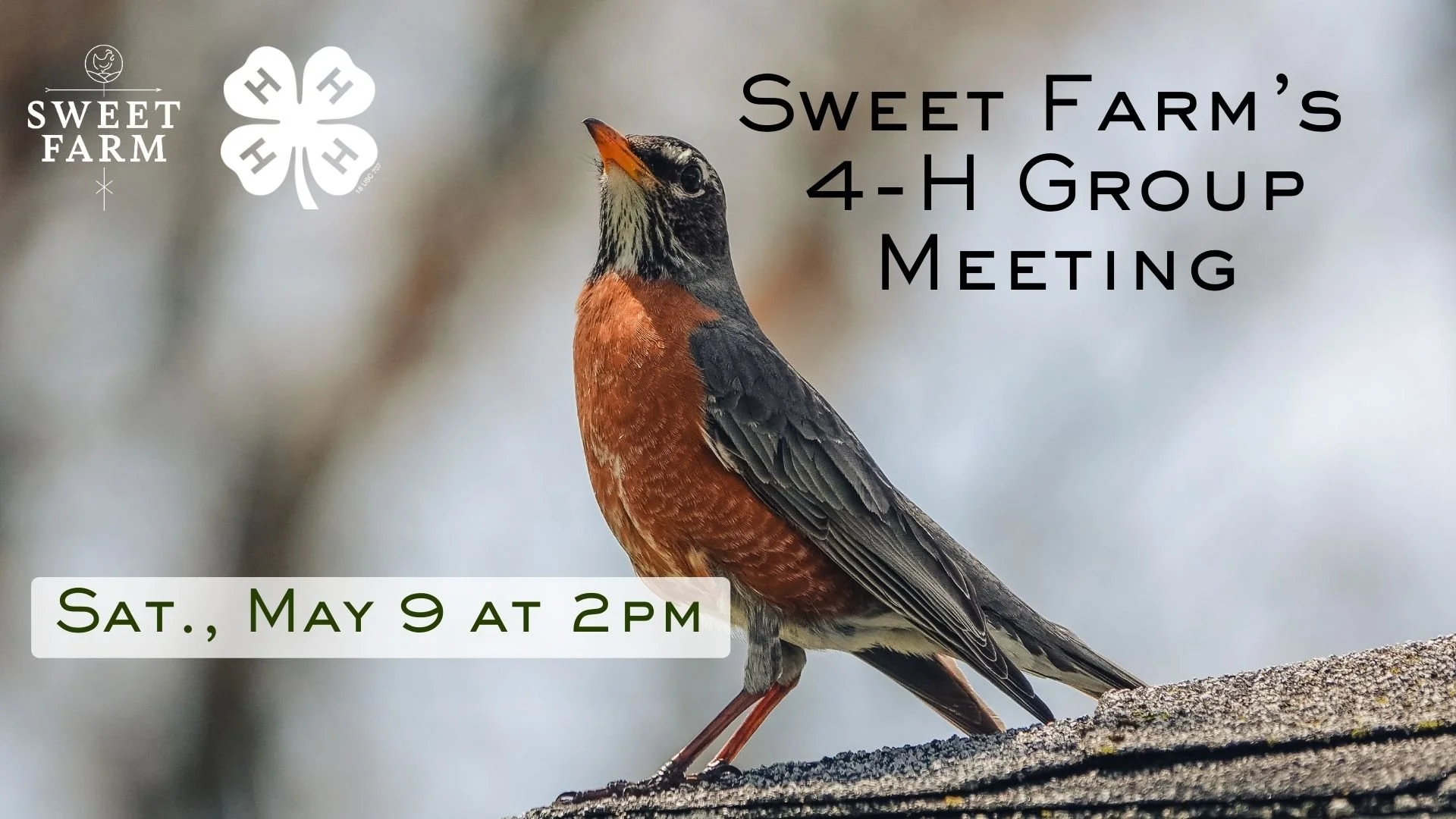 Back to All Events 4-H Group Meeting: Wild Birds Saturday, May 9, 2026 2:00 PM 3:00 PM Sweet Farm 210 Hall Road Himrod, NY, 14842 United States (map) Google Calendar ICS We will be learning about wild birds with Master Gardener Fran! Not signed up for our 4-H Group? CLICK HERE TO LEARN MORE