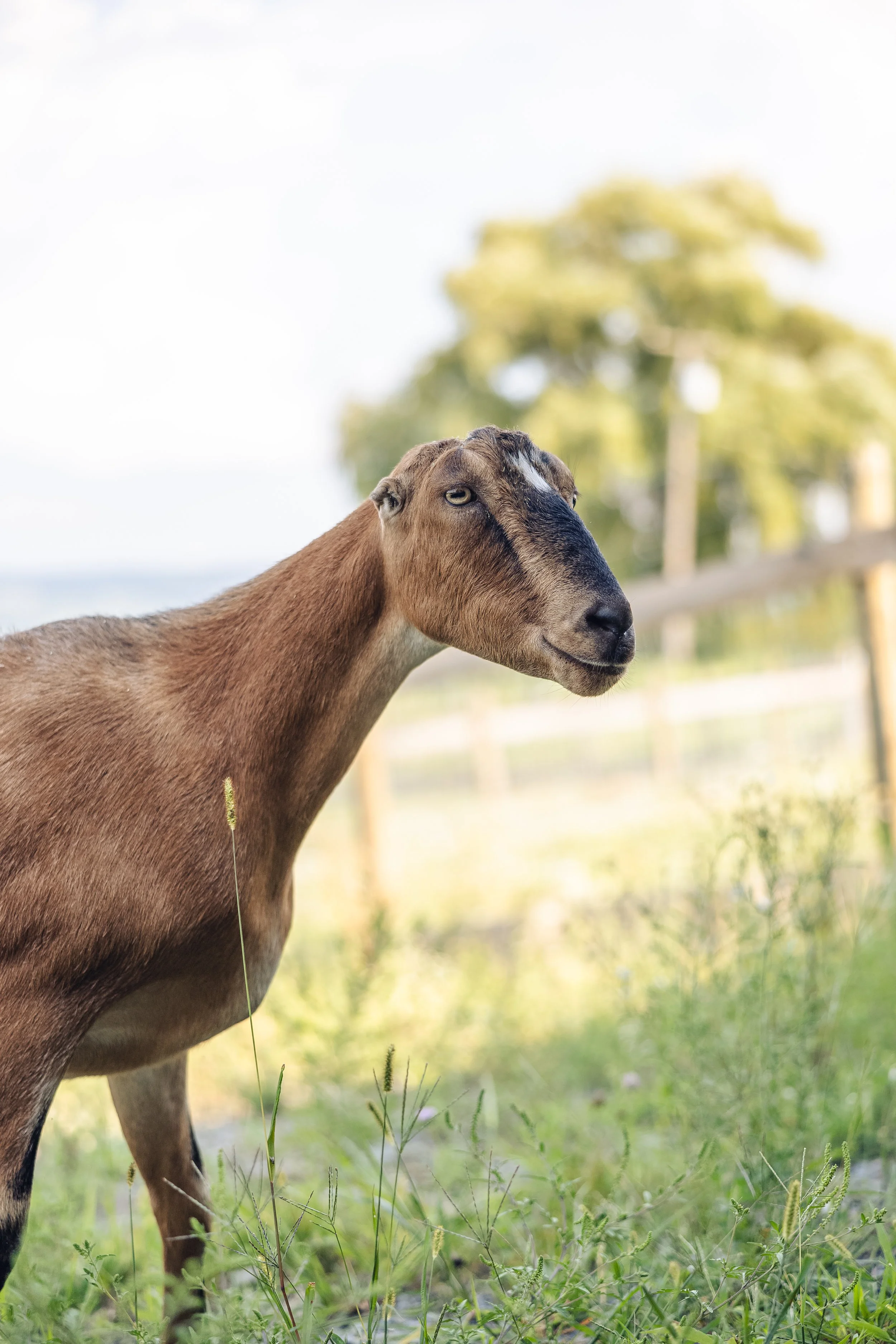 Zulu came to us in 2024 from a sanctuary that was sadly forced to downsize drastically and rehome most of their rescued animals. This handsome La Mancha was rescued from slaughter at only six months old when a farmer's granddaughter begged her grandfather to spare Zulu's life because she had developed a bond with the sweet and friendly goat. Zulu was being raised to be food, but the farmer did allow his granddaughter to find him a forever home. Sadly, his forever home did not turn out to be "forever"...but Sweet Farm will be! And we are SO grateful for it!